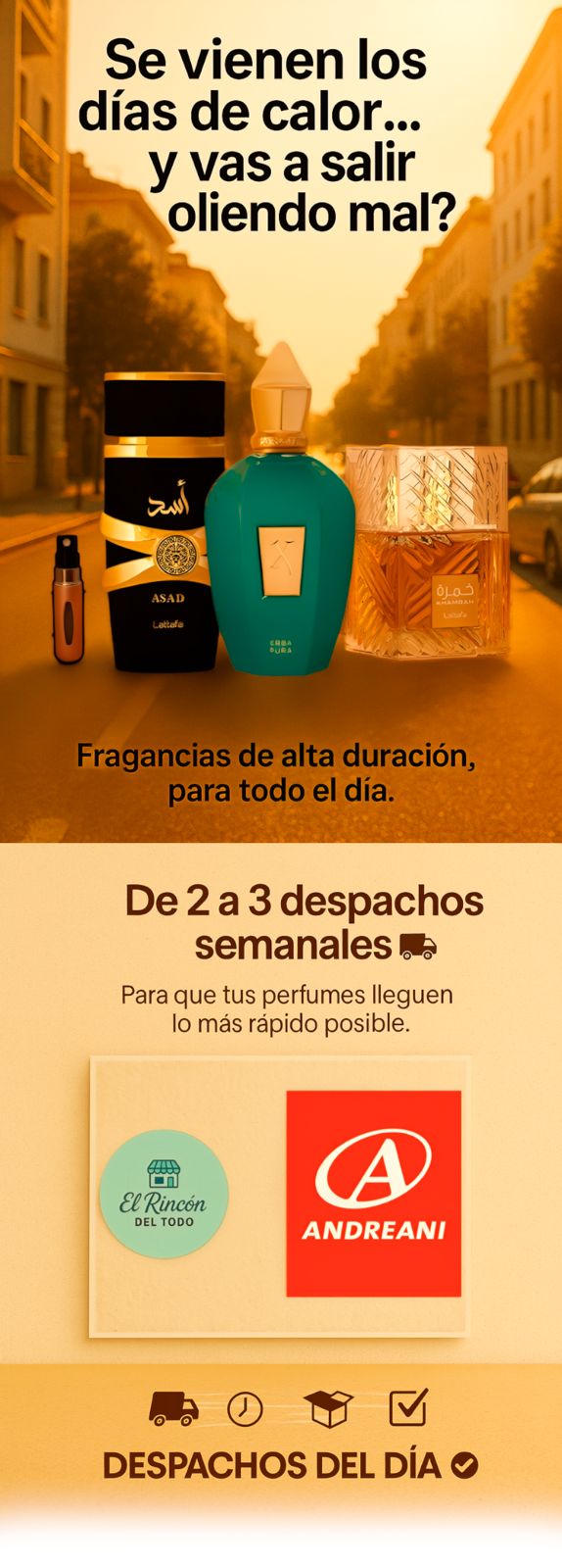 DE 2 A 3 DESPACHOS SEMANALES, PARA QUE TUS PERFUMES LLEGUEN LO MAS RAPIDO POSIBLE